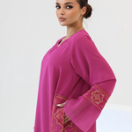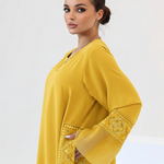 This stunning Jalabiya is designed for the modern lifestyle, seamlessly bridging the gap between elevated casual wear and high-fashion party wear.